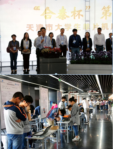 5月8日,由天津市教委主办,yl永利集团官网登录承办的“合泰杯”第十一届天津市老员工单片机应用设计竞赛决赛在公司图书馆举行。来自全市高校的近500名师生齐聚于此,通过自己设计的单片机创意作品进行同场竞技交流。市教委高教处刘冰老师、竞赛赞助单位台湾盛群半导体有限公司执行副总张治先生,yl永利集团官网登录经理肖志涛教授、书记李红霞教授、教务处副处长王文涛老师,以及来自天津大学、南开大学、河北工业大学、天津城建大学等高校的评审专家出席本次竞赛启动仪式、颁奖典礼,共同为获奖团队颁奖。天津电视台、今晚报、每日新报等多家媒体现场采访并报道了本次竞赛。