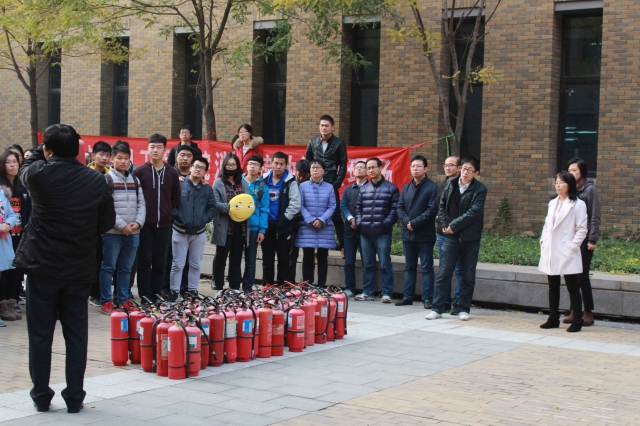 演练前,公司保卫处张志勇副处长和防火科的老师应邀为师生们进行了消防安全知识培训并演示了灭火器的使用方法以及相关的注意事项。随后,师生们现场使用灭火器进行操作。