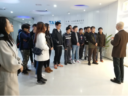 首先,天堰公司技术总监周靖杰介绍天堰公司整体情况,包括:企业产品、企业文化、企业未来发展方向,并带领同学们参观公司医教产品,介绍了急救训练模型人、综合超声虚拟训练系统、介入手术虚拟训练系统等产品用途与开发流程。