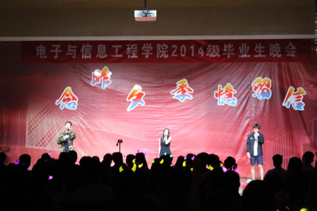 全场大合唱的歌曲《后来》带起了整场晚会的氛围;流行歌曲《说散就散》用说唱与通俗歌曲的结合让全场观众兴奋地挥舞手中的荧光棒;让人捧腹大笑的相声《反七口》展现了演员们扎实的基本功;大家期待已久的李贺老师带来的《太极扇》,举手投足间迸发出刚柔并济的力量,可攻可守。晚会中间穿插的新颖的游戏环节和抽奖活动,拉近了老师与同学们的距离;晚会最后的男生合唱《小幸运》似乎说出了全体毕业生的心愿,“原来你是我最想留住的幸运”就像李东老师说的那样:“欢迎大家毕业后常回来看看。愿你出走半生,归来仍是少年。”