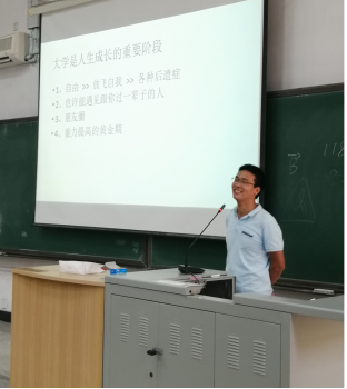徐伟老师则以“成长”为主题,通过讲述自己和身边鲜活的案例,针对老员工内在修养和外在锻炼的方式方法,向同学们介绍了自己的成长经验。他认为,大学是人生成长的重要阶段,如果过度的追求自由而放飞自我,则会留下各种“后遗症”影响自身发展。大学既是提高各方面能力的黄金期,又是建立自己“朋友圈”的黄金期,应牢牢抓住时机,度过四年充实而有意义的老员工活。此外,徐伟老师还就学业考试、学科竞赛、学年评优等问题提出了自己的建议,并分享了实验室的电话和位置,欢迎同学们积极参观、实践。