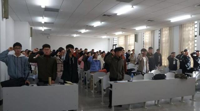 仪式开始,主持人—电子1803蔡玉金同学致开幕词,认真向与会人员介绍雷锋服务队的志愿历史,并明确了雷锋服务队一直以来奉行的“奉献、友爱、互助、进步”的志愿精神。紧接着新生代表王超同学上台发言,表明自己作为雷锋服务队新队员应继承并发扬“奉献、友爱、互助、进步”的志愿精神,始终秉持“爱心献社会,真心暖人间”的理念,时刻准备为志愿服务事业的发展贡献自己的一份力量。仪式最后,团委范丹莉学姐带领全体与会人员重温入团宣誓,宣誓过程庄严肃穆,入团誓词掷地有声,在全体团员饱满的热情中,本次宣誓仪式顺利结束。