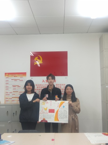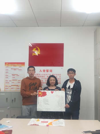 小组成员们围绕主题积极搜索相关资料,构思手抄报整体设计。党员们从内容的选择、板块的设计、用色的搭配、到整体的构图等方面,都十分认真、用心。党员们画国旗、剪党徽,绘天安门、折和平鸽,写《我爱这土地》,书《少年中国说》,把对祖国母亲的热爱融入绘制的国旗上,融入书写的诗歌里,融入手抄报的制作过程中。经过一下午的努力,四个小组共完成《我的中国我的梦》、《我爱你中国》、《恒爱中国安享盛世》、《庆祝建国七十周年》四幅手抄报作品。