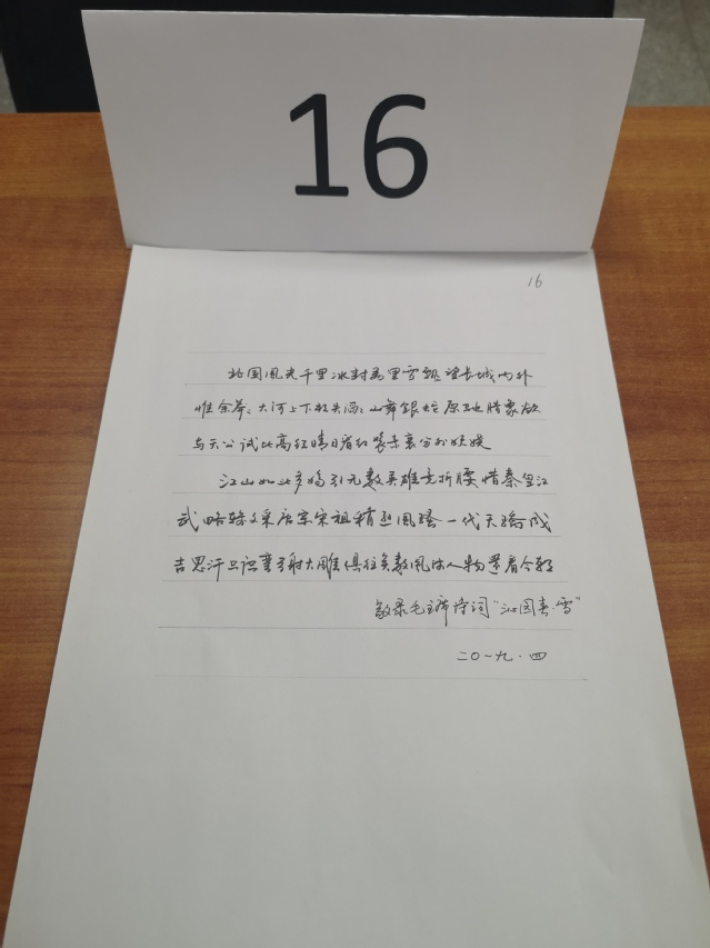 本次活动持续两周时间,全体党员干部热情参与,纷纷一展书家韵致,本次活动共收集师生作品17篇,并且邀请其他支部教师及员工作品做评委进行投票,最终选出一等奖两名,二等奖四名,三等奖六名。