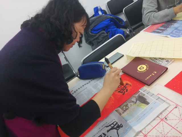 活动现场,红红的宣纸铺满桌面,浓浓的墨香飘散满屋,到处透着喜庆吉祥的味道。随后,支部党员们挥毫泼墨,手中的毛笔龙腾蛇舞、行云流水,精心创作出一幅幅赞颂党、歌颂国、喜迎新春的吉祥对联。