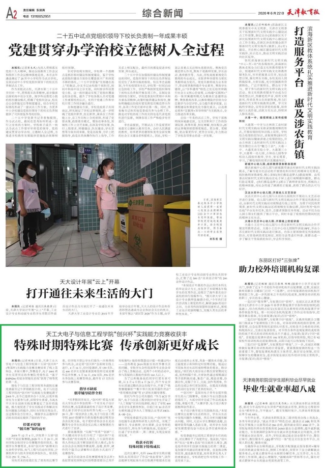 6月22日,《天津教育报》以《特殊时期特殊比赛 传承创新更好成长》为题对公司第十五届“创兴杯”(维晟杯)实践能力竞赛作了报道。