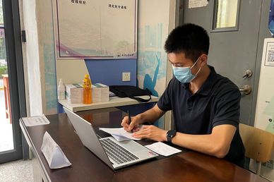 4月28日晚上11时50分,杨树昌老师值守在东苑10号楼公寓。正在值班的杨老师接到了一个员工电话,员工焦急地说因为飞机延误,可能凌晨3点才能落地,非常担心无法办理入住。听到员工的疑虑,杨老师马上安抚关怀,并告诉员工无论今晚多晚到校,他都会在公寓楼等他。多日的返校统计、日常性工作和公寓值守让这个往日阳光大男孩的黑眼圈更重了。但杨老师说:“员工公寓是校内集中住宿的场所,是员工生活学习的主要场地。公寓值守工作是保障员工安全入住的最后一公里。我是天工大家庭的一份子,能为员工安全发一份热,我愿意。希望疫情早日散去,同学们都能重返校园。”