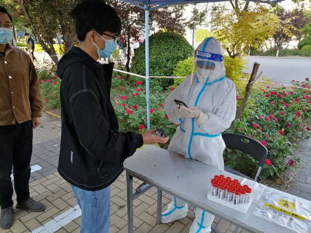 4月28日早上6时,雨淅淅沥沥的下着。公司陈力颖老师、韩丽丽老师、高强老师和邓集杰老师来到了北苑5号楼北侧检测点。此检测点早上检测任务为600人。由于气温骤降,老师们虽然适当增加了衣物,但还是冻得瑟瑟发抖。时间紧,任务重,来不及考虑自身,老师们马上进入了工作状态。他们协助搭建帐篷、讨论避雨预案、搬运检测用品、信息录入、递送棉签、维持秩序等。上午12时30分,老师们顺利协助完成了920人的核酸检测,比预期还多了300人。高强老师说:“能为疫情防控出一份力,我觉得很充实。‘疫’散花开日,未来当可期,希望在大家的共同努力下,早日迎来抗‘疫’的最终胜利。”