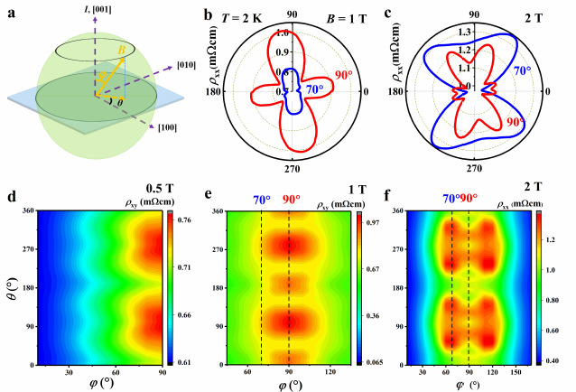 图1、HoPtBi中磁场调控的反常AMR效应