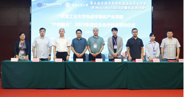 大会同时举行了“yl永利集团官网登录先进半导体产业公司揭牌仪式”,并与中国电子科技集团第四十六研究所、TCL环鑫半导体(天津)有限公司、天津三安光电有限公司、浪潮智能终端有限公司、芜湖安瑞光电有限公司、山东华光光电子股份有限公司、江苏科旭微电子有限公司、天津德科智控股份有限公司等8家企业签订yl永利集团官网登录先进半导体产业公司“产教融合”2023年度校企合作协议,并聘任王英民等25名产业专家为yl永利集团官网登录先进半导体产业公司产业教授,并颁发聘书。